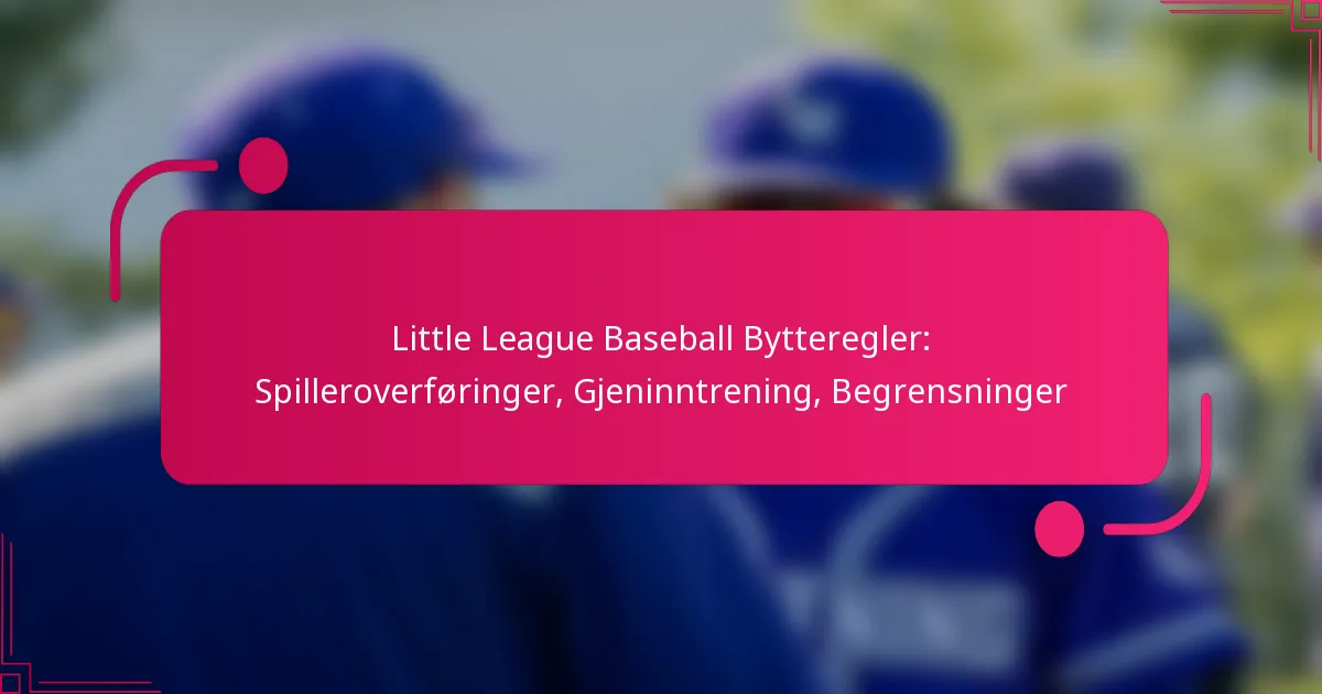 Reglene for bytte av spillere i Little League Baseball beskriver prosedyrene for spillerbytter, inkludert gjeninnføring og begrensninger på bytter. Disse retningslinjene er avgjørende for å sikre rettferdig spill og opprettholde flyten i spillet, noe som gjør det viktig for trenere og spillere å forstå dem grundig.
