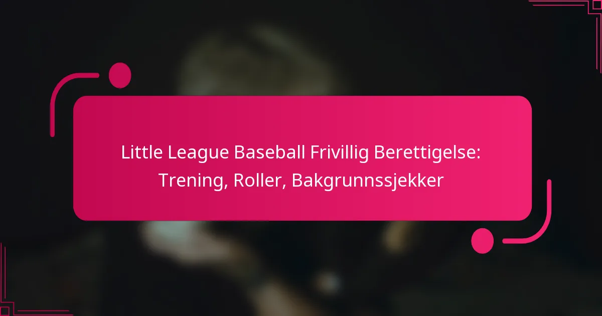 Å være frivillig i Little League Baseball krever at enkeltpersoner oppfyller spesifikke kvalifikasjonskriterier, inkludert alderskrav og bakgrunnssjekker, for å sikre et trygt miljø for unge idrettsutøvere. Frivillige kan ta på seg ulike roller, som coaching eller administrative oppgaver, hver med sine egne ansvar og krav. Bakgrunnssjekkprosessen er avgjørende for å verifisere egnetheten til de frivillige, og bidrar til å opprettholde sikkerheten og integriteten til ligaen.
